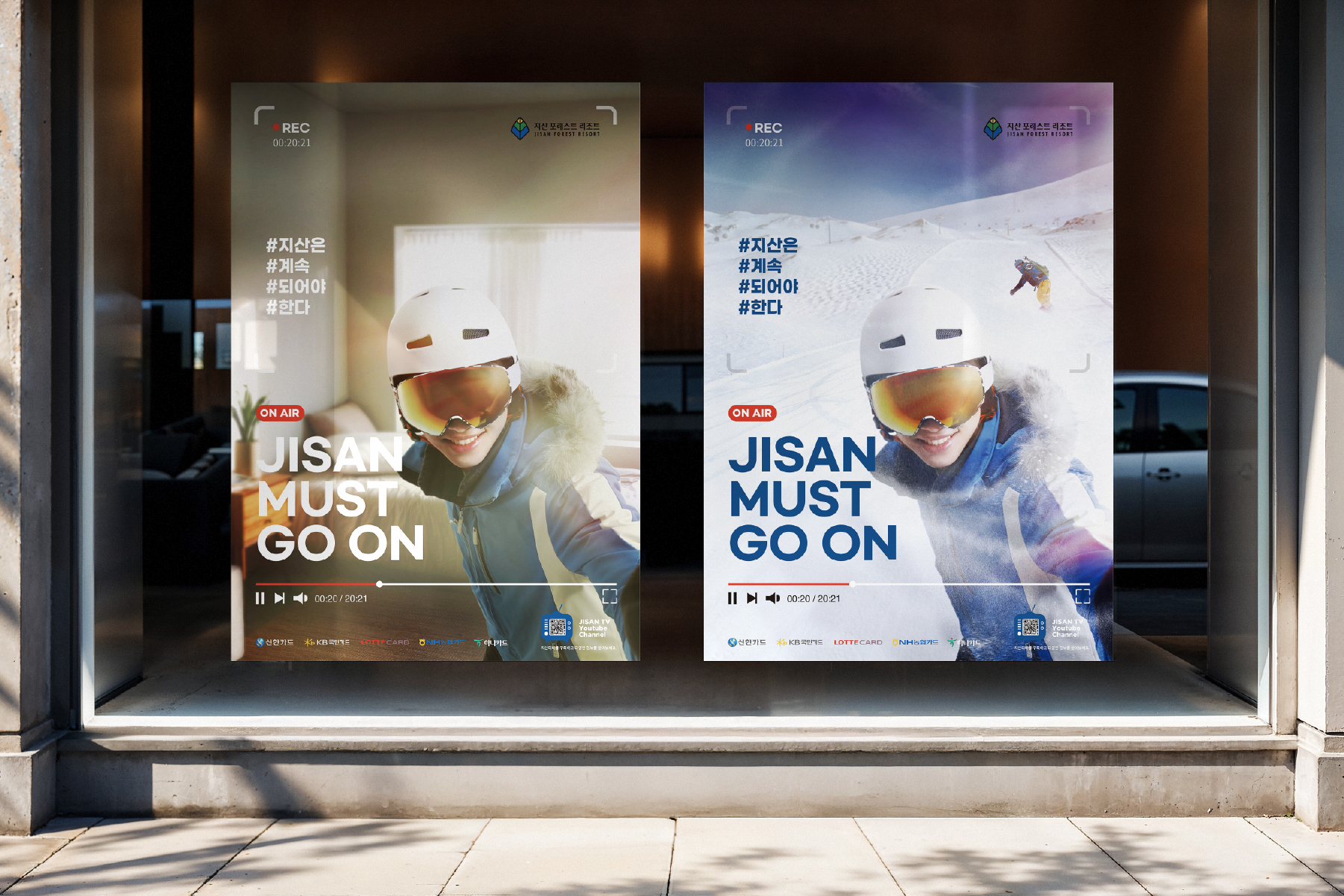 어떤 상황에서도 "지산은 계속 되어야 한다"라는 퀸의 "Show must go on"에서 차용해, 코로나19로 집콕 생활만 하게 되는 상황에서 집에서도 스키를 즐기고, 지산에서도 스키를 즐기고자 하는 겨울스포츠에 대한 의지를 두 가지 상황으로 만들었습니다.