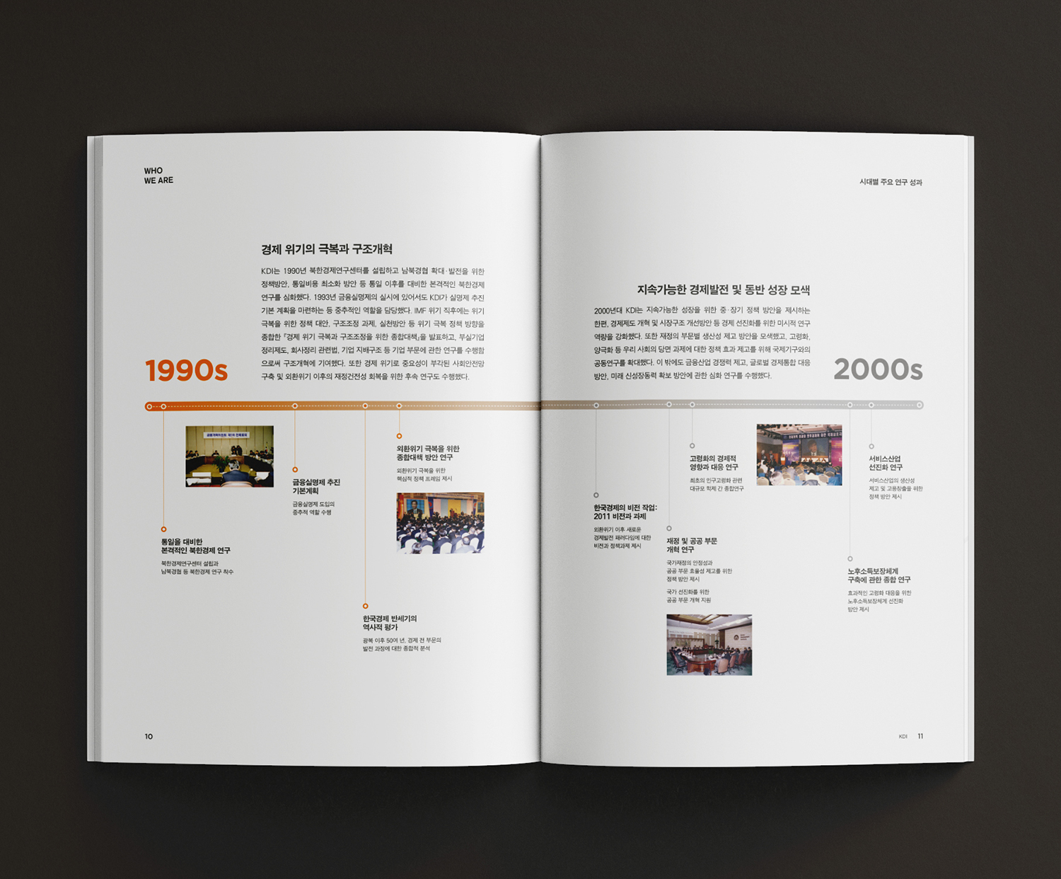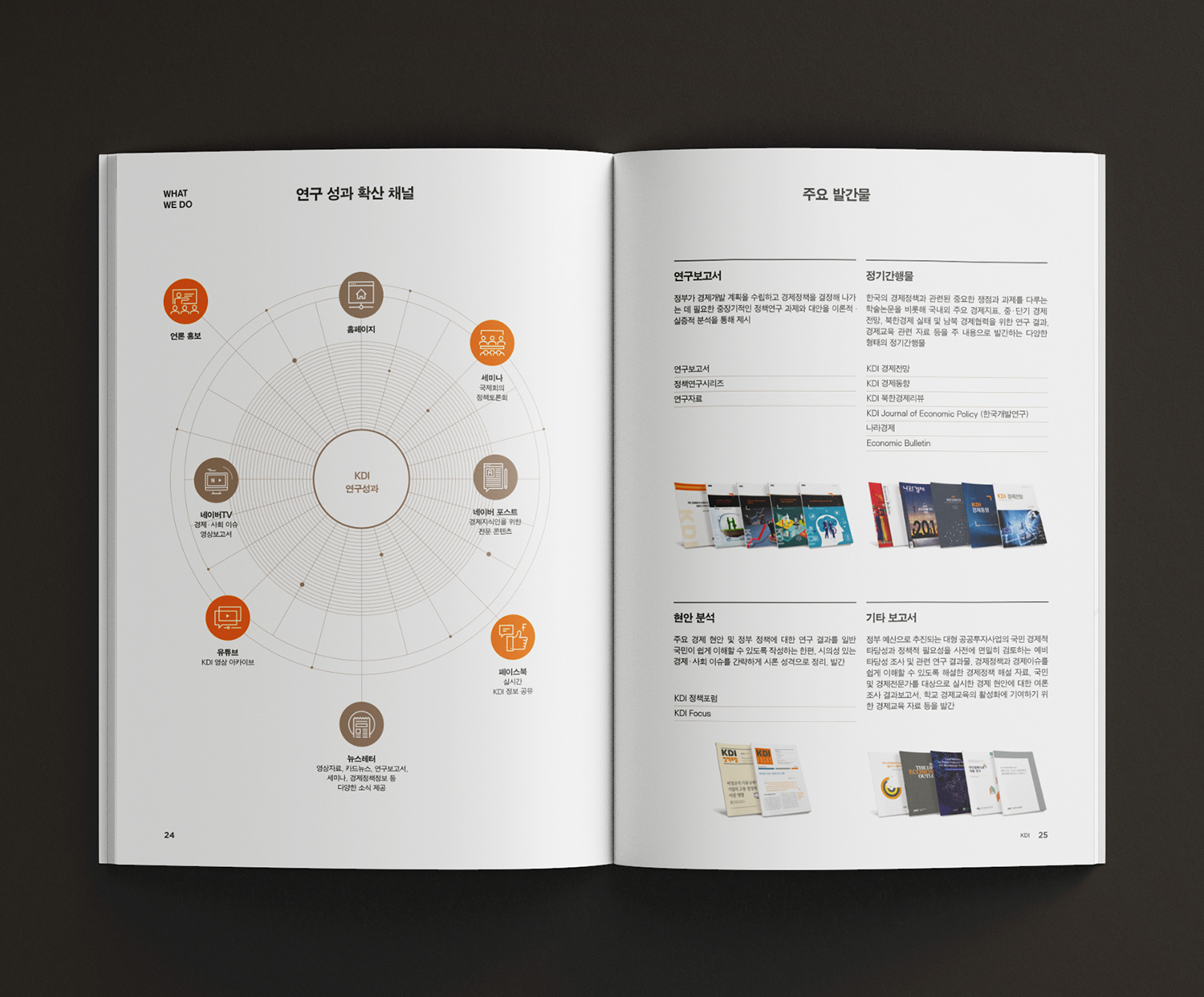 Project KDI Brochure Year 2019 Client 한국개발연구원 Service Editorial Design Brochure 50주년을 맞이하는 한국개발연구원의 브로셔 디자인을 진행했습니다. 국내 사회과학 분야 유일의 종합 정책 연구기관인 한국개발연구원의 영향력을 나이테의 라인을 모티브로 심플하게 나타내었습니다.
