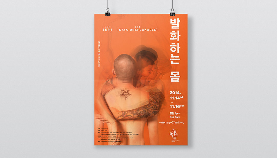 상처, 기쁨 등 몸이 기억하는 자신의 역사를 새기듯 표현한 현대무용의 작품을 이미지화 하고, 인간의 몸이 기억하는 역사를 몸에 새긴 타투로도 표현하였습니다. 여러 무용수들의 얼굴이 겹쳐져 제목처럼 발화하는 몸을 형상화하였습니다.