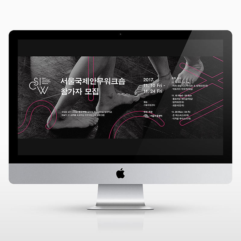 서울문화재단의 서울무용센터에서 해마다 진행하는 서울국제안무워크샵의 브랜드 가치를 해외에 알리기 위한 브랜드 아이덴티티를 개발했습니다. 워크샵 키비주얼 및 프로그램 브로슈어를 제작하였습니다.