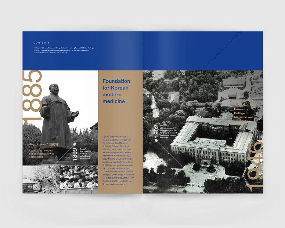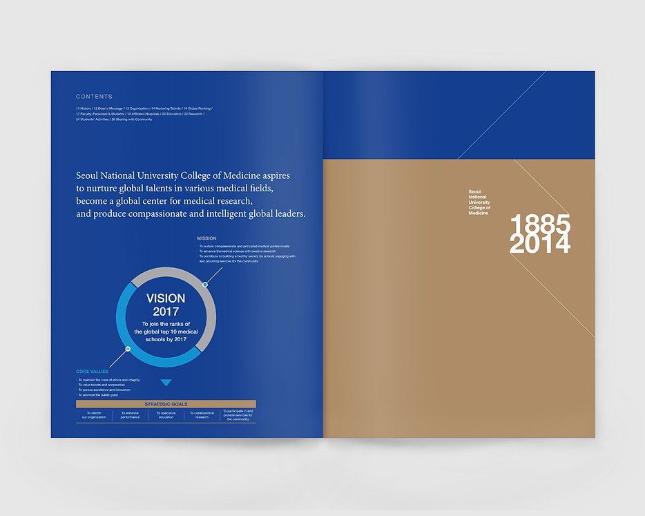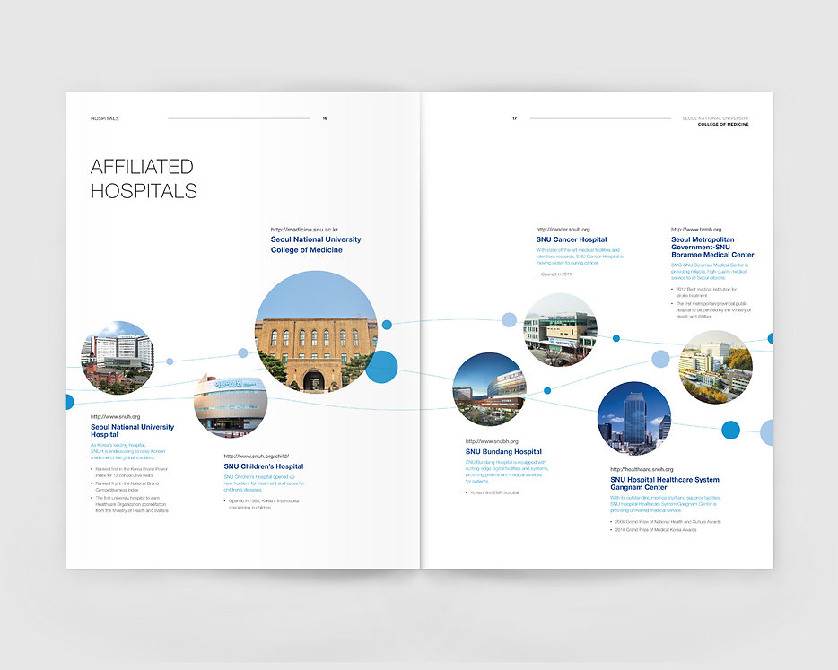 글로벌 인재양성의 요람, 세계적인 연구 중심 서울대학교 의과대학 브로셔를 제작했습니다. 근대 의료의 초석인 제중원 역사와 함께하는 서울의대는 “대한민국 의료의 미래”라는 자긍심으로 메디컬 의료서비스의 시작인 최고의 의료진과 시설을 갖춘 국내 의학발전의 중심입니다.